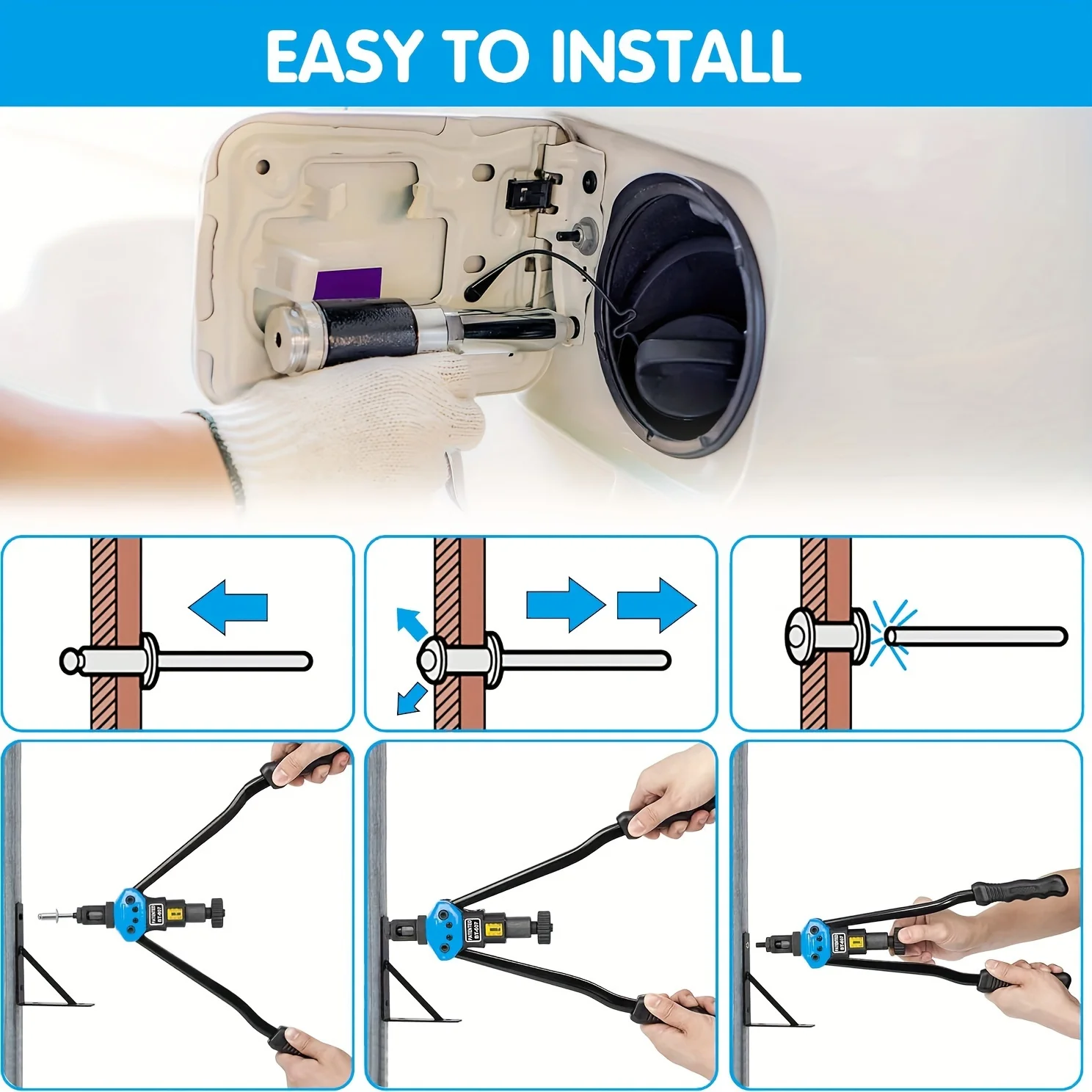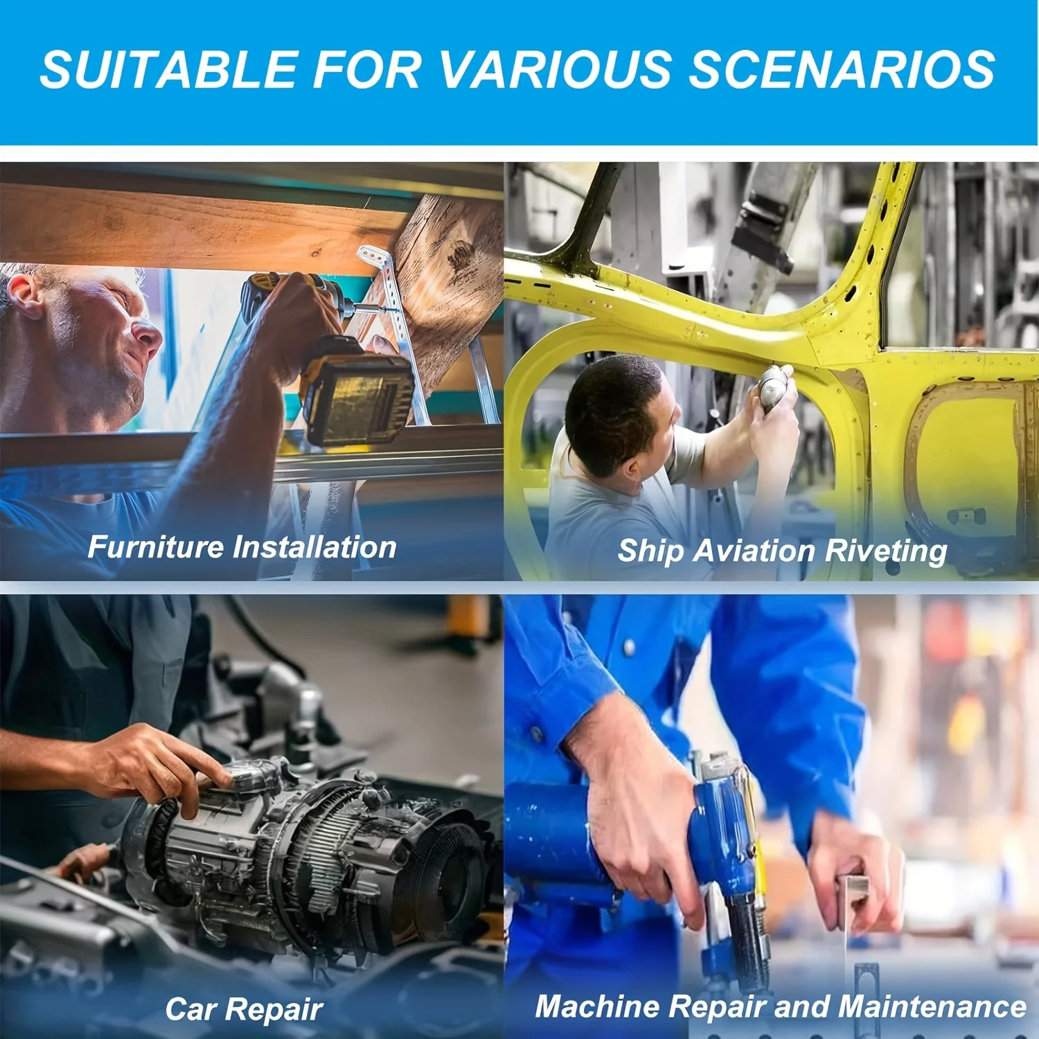 The aluminum blind rivets are corrosion-resistant and lightweight, providing strong, secure joins on metal, plastic, and leather. The ergonomic hand rivet pliers allow effortless operation, while the included drill bits help prepare precise pilot holes for perfect installation. This kit is perfect for both professionals and DIY enthusiasts looking for convenient, all-in-one rivet solutions.