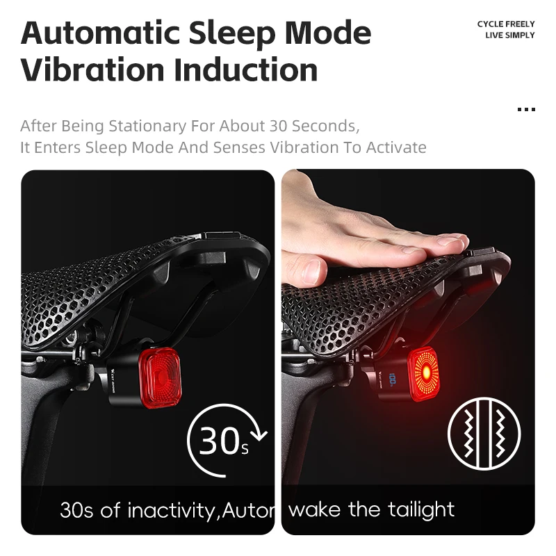 This brake-sensing bicycle taillight features a digital power display and auto start/stop functionality, providing enhanced safety and convenience. Designed for long endurance, it ensures consistent visibility during cycling in all conditions. Compact and easy to mount, this taillight is an essential accessory for MTB, road, and commuter bikes, helping riders signal braking and stay safe on the road.