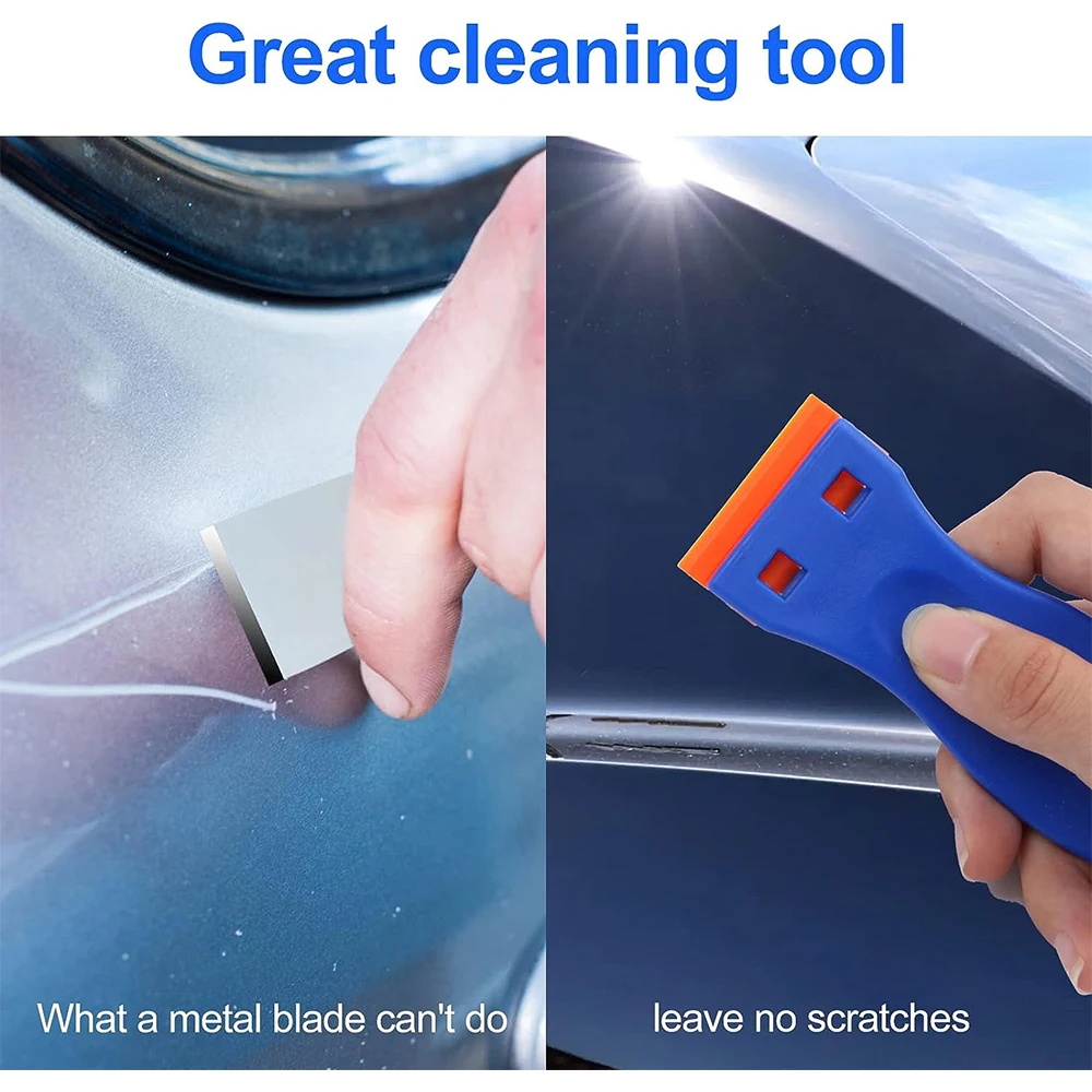The Plastic Razor Blade Scraper Tool is a versatile cleaning accessory designed to safely remove dirt, residue, and adhesives from a variety of surfaces. Its plastic blades are gentle enough to avoid scratches while still being effective, and the ergonomic handle provides control and comfort. With replaceable blades, this tool is perfect for home, automotive, and professional use.